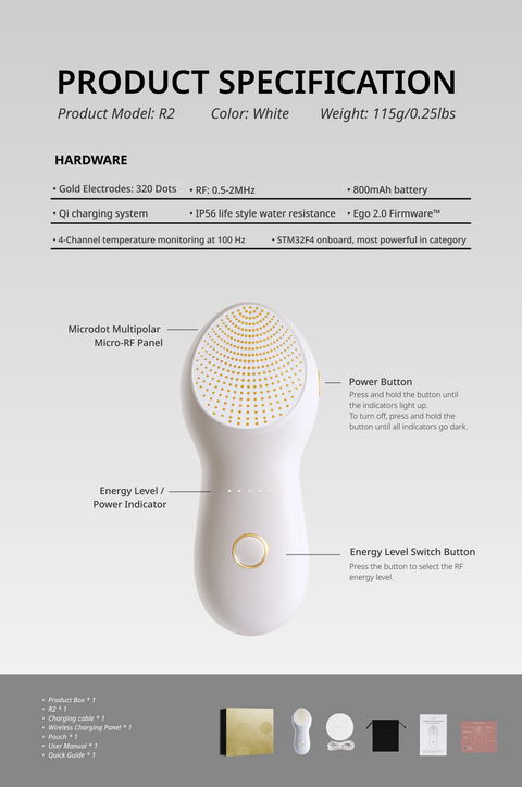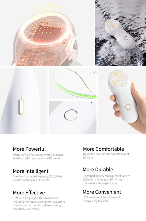 Adopting the Microdot™ 2.0 technology with 320 denser Gold electrode dots on a larger panel, accelerating collagen cell regeneration like never before.